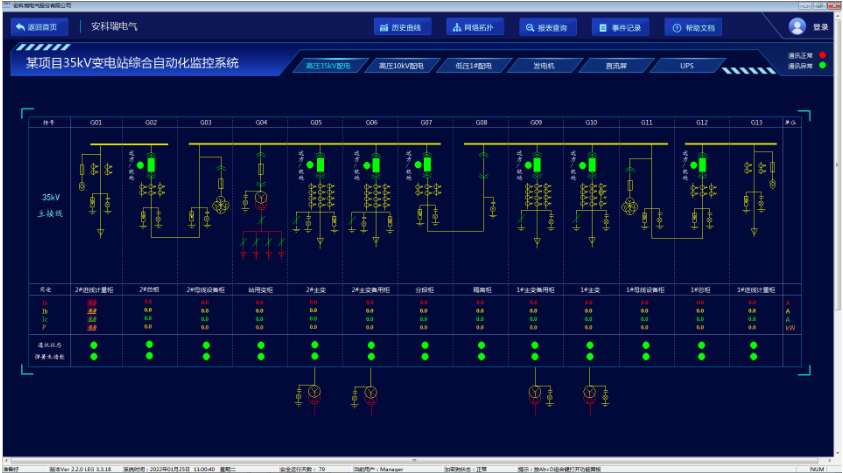Acrel-1000變電站綜合自動化系統(tǒng),以配電一次圖的形式直觀顯示配電線路的運行狀態(tài),實時監(jiān)測各回路電壓、電流、功率、功率因數(shù)等電參數(shù)信息,動態(tài)監(jiān)視各配電回路斷路器、隔離開關(guān)、地刀等合、分閘狀態(tài)及有關(guān)故障、告警等信號。