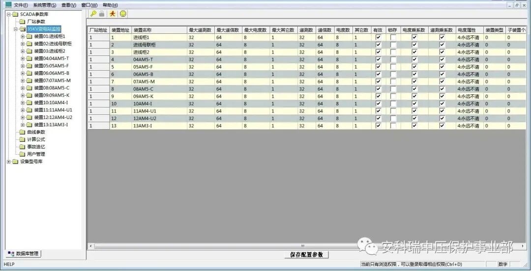 35kV進線柜配置一臺線路保護AM5SE-F,當回路故障時,用于跳開本柜斷路器,切斷故障。